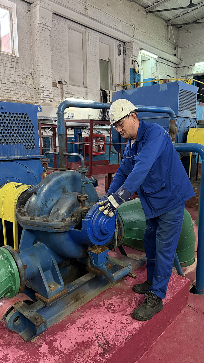 Работа насосной полностью автоматизирована, но за каждым показателем следят специалисты турбинного цеха. Они контролируют уровень воды в реке, состояние водоприёмника, чистоту трубопроводов и устойчивость давления в системе.